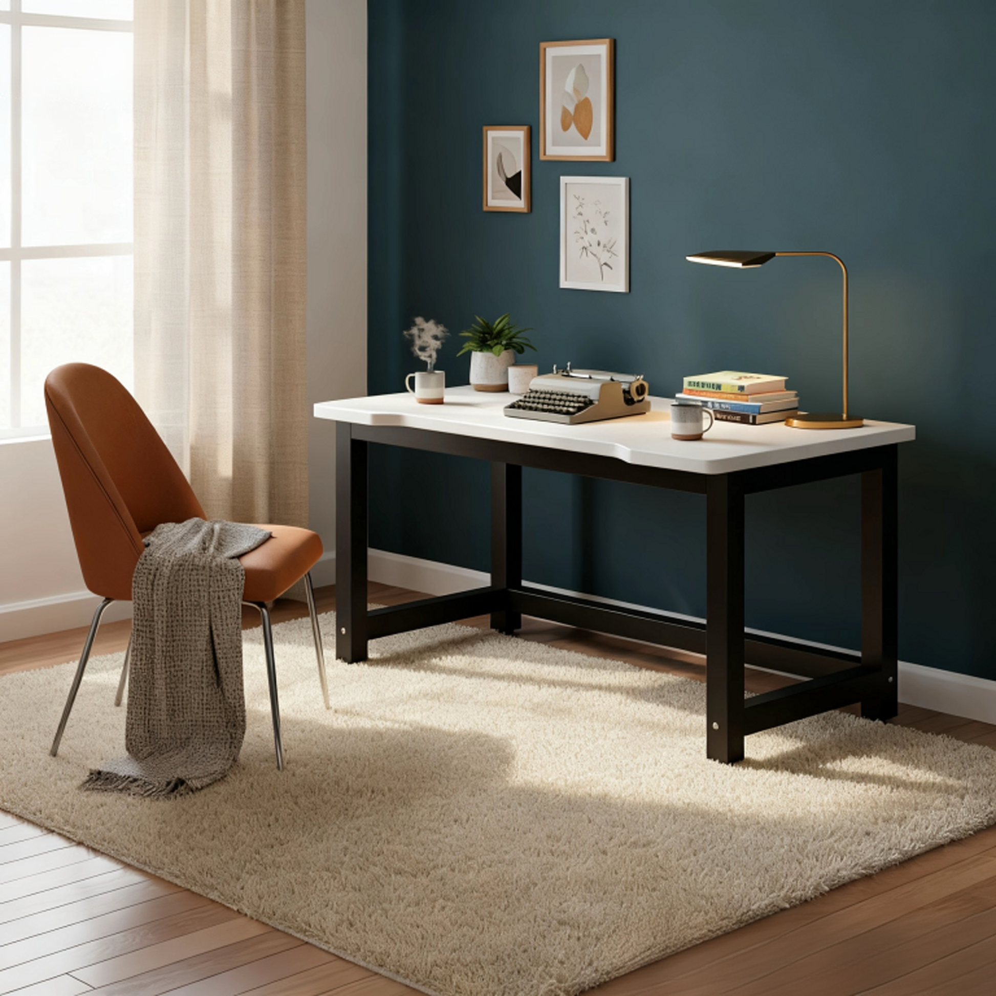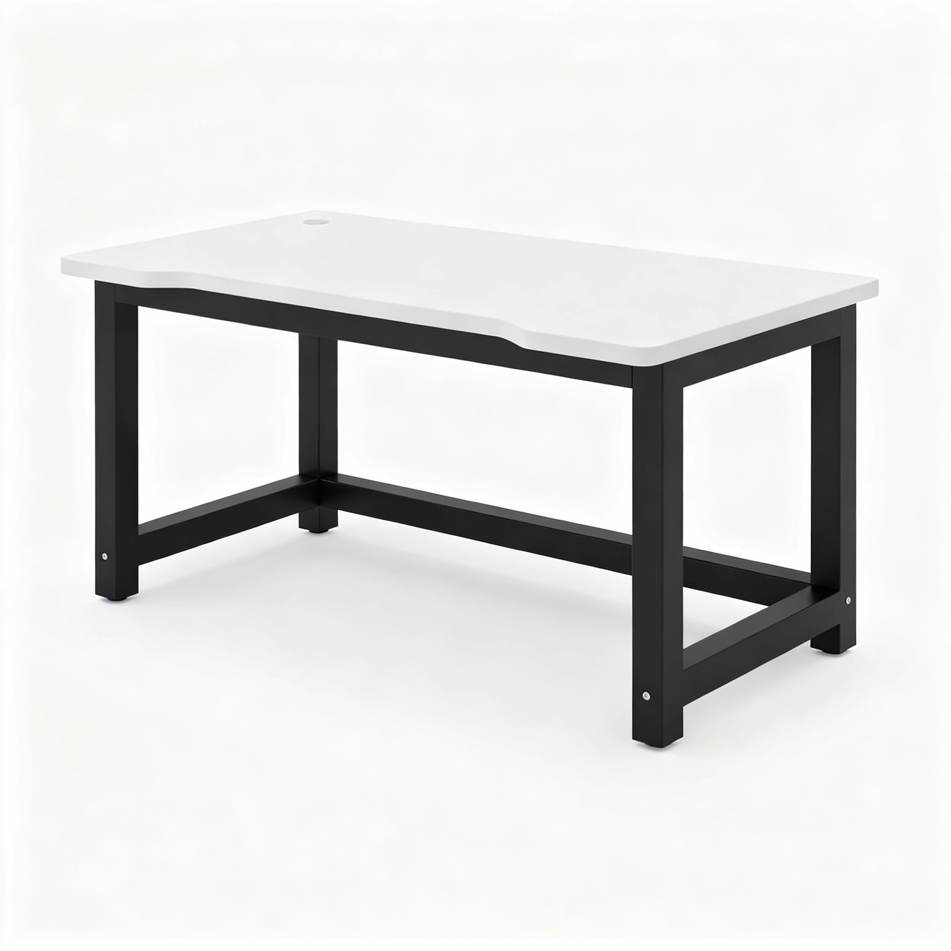 Striking Minimalist Aesthetics: Featuring a pristine white tabletop paired with sturdy black legs, the desk creates a classic yet powerful contrast. Its simple lines and geometric structure perfectly embody modern minimalism.