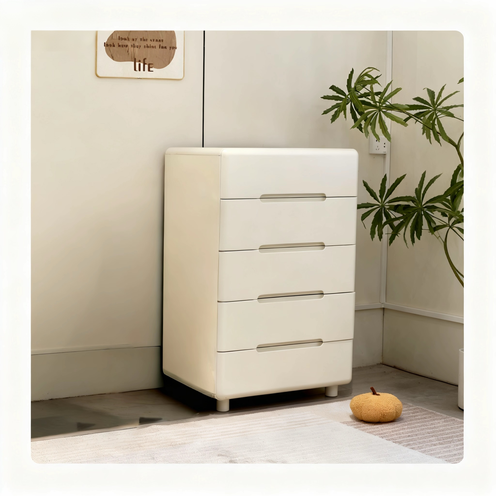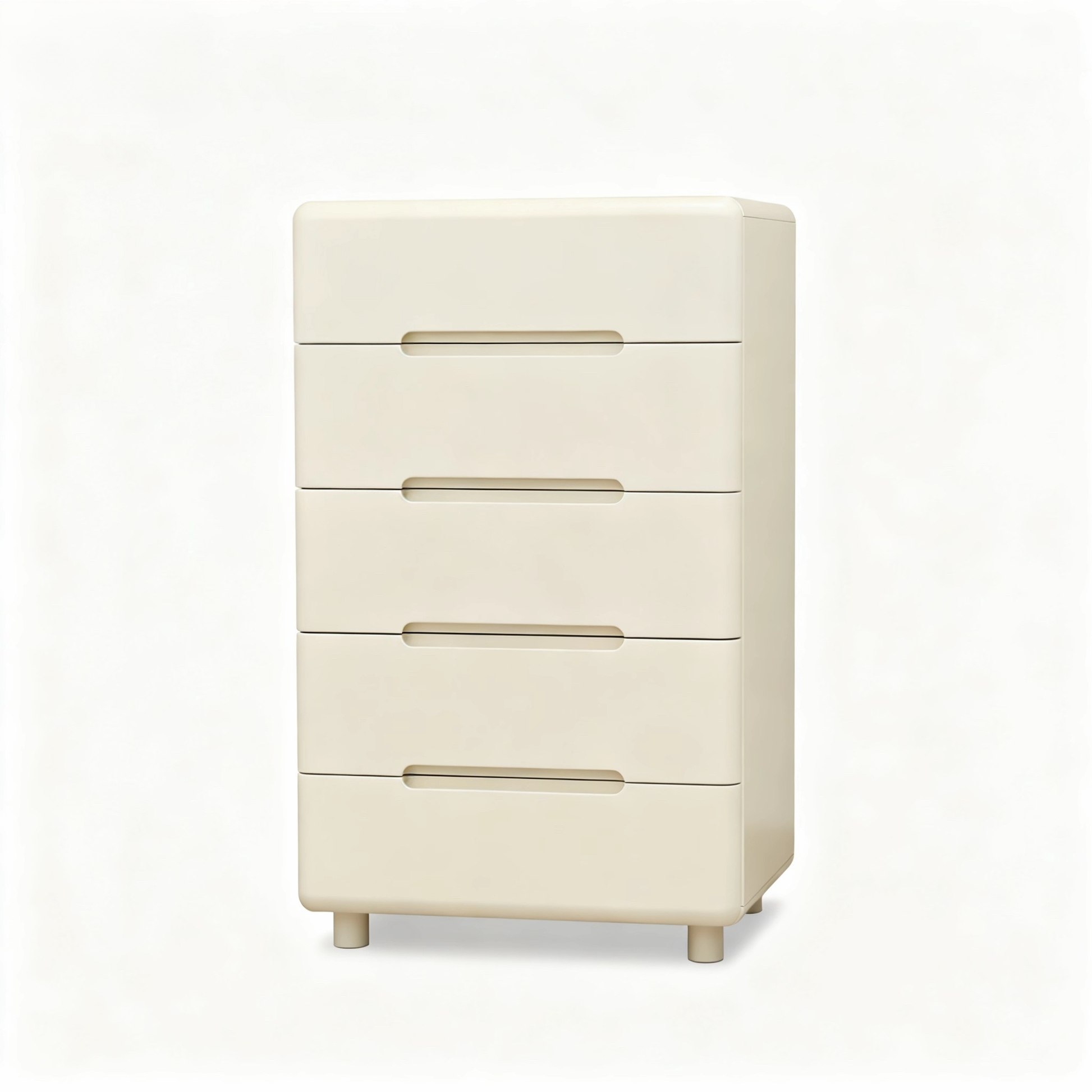 Bring the calming aesthetic of the Cream Wind trend into your home with our Pebble Five-Drawer Storage Chest. Designed for both beauty and function, this piece offers ample organization in a look that is stylishly modern and perfectly safe.